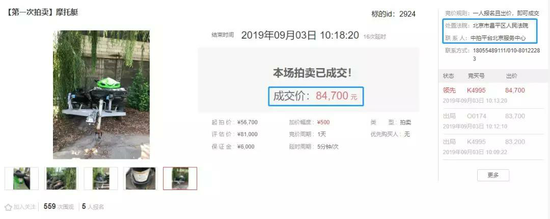 摩托艇以5.67萬元起拍,歷經(jīng)37次競(jìng)拍,最終以8.47萬元成交