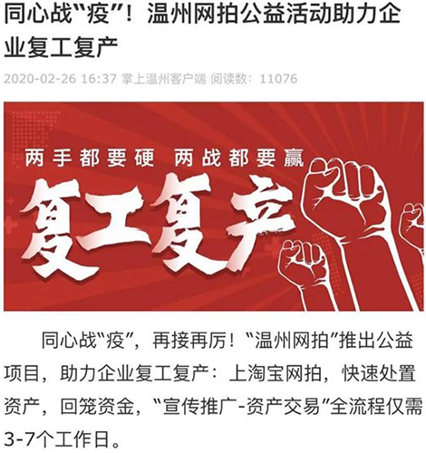 溫州嘉誠(chéng)拍賣為發(fā)揮好責(zé)任擔(dān)當(dāng)和能力擔(dān)當(dāng),助力抗疫后期的經(jīng)濟(jì)恢復(fù),在繼續(xù)加強(qiáng)與各地拍賣企業(yè)共同對(duì)農(nóng)村市場(chǎng)的研究與探索外,還聯(lián)合溫州網(wǎng)拍(溫州市網(wǎng)拍信息技術(shù)有限公司)推出公益活動(dòng),對(duì)企業(yè)的庫(kù)存資產(chǎn)處置(成品、半成品)推出網(wǎng)拍零傭金活動(dòng)。此外,溫州嘉誠(chéng)在疫情期間還加緊開發(fā)APP小程序應(yīng)用——“拍小虎”,配套更多資產(chǎn)處置進(jìn)行流程管理、拍品預(yù)約看樣、大宗資產(chǎn)管理等。