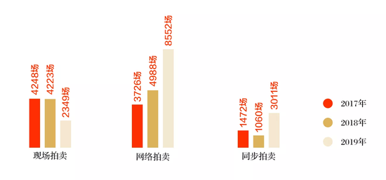 2017-2019年不同拍賣形式場(chǎng)次變化情況