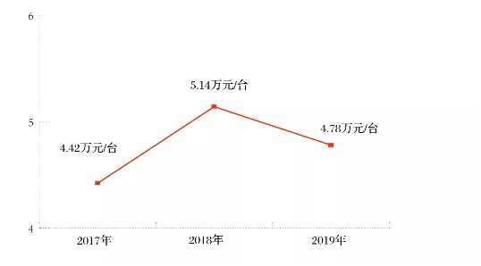 2019年,由于5萬(wàn)元以下成交車輛增加5.68%,車輛均價(jià)下降至4.78萬(wàn)元/臺(tái),與全國(guó)二手車交易市場(chǎng)存在一定差距。